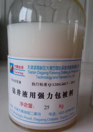 該產(chǎn)品是本公司用于對付強(qiáng)造漿性地層和水敏性坍塌地層的主要產(chǎn)品,其化學(xué)結(jié)構(gòu)屬丙烯酸鹽高聚物類,它的主要特點(diǎn)是以乳液形式存在,這種產(chǎn)品之所以要做成乳液形式的原因主要有兩點(diǎn)。首先, 它成功地解決了高聚物的分子量與溶解速度之間的矛盾;以往我們使用的聚合物都是粉狀的,分子量都做不高也不允許太高,原因是如果分子量做的太高,處理劑溶解起來會很困難,一部分漂浮在鉆井液罐表面,相互粘結(jié)成幾乎不再溶解的團(tuán)塊,一部分混入鉆井液來不及完全溶解就被固控設(shè)備除掉,只有部分溶解并發(fā)揮作用,這樣致使鉆井液得不到及時(shí)處理,也影響施工,于是國內(nèi)大部分高聚物的分子量都在300到500萬之間,而這樣低的分子量是難以實(shí)現(xiàn)強(qiáng)抑制性的,這也是國內(nèi)聚合物鉆井液使用不徹底的主要原因。其次,高聚物做成乳液形式方便了現(xiàn)場操作。一般來講,高聚物的加入都采取“少食多餐”的原則,即經(jīng)常性的細(xì)流加入。因?yàn)楦呔畚锏闹饕饔镁褪俏皆阢@屑表面,抑制其分散,它是不斷地在消耗的,所以要求經(jīng)常、均勻地加入,以保證鉆井液中始終保持一定的含量,否則一旦中途斷檔,地層開始造漿后,就只有采取放鉆井液,加水稀釋處理的辦法了。而COATER一般是50kg桶裝液態(tài),桶底部有一放料口,只要將處理劑桶置于合適位置,擰開絲蓋,處理劑就流出,調(diào)節(jié)一下流量就可以在一定時(shí)間內(nèi)完成處理作業(yè),使用非常方便。